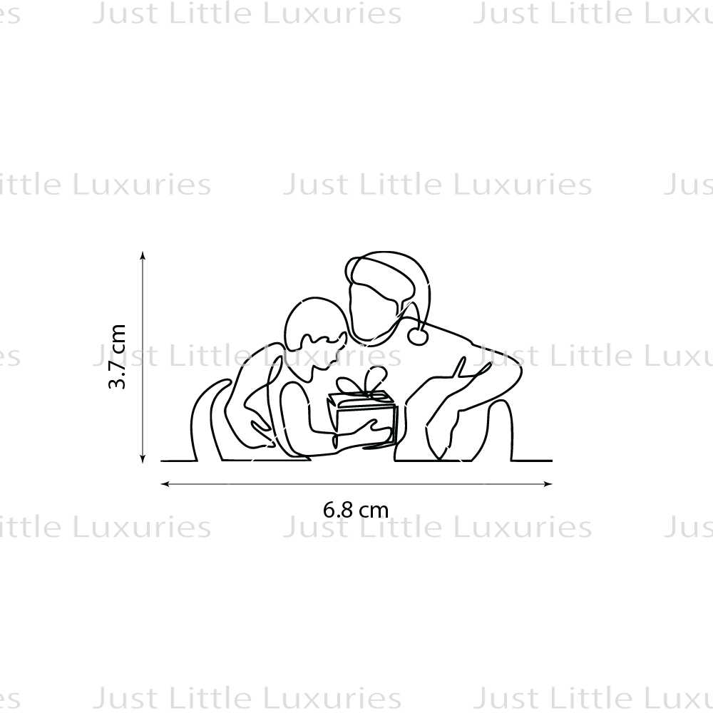 This style will allow you to emboss (press in) the outline of the image into fondant or cookie dough. This embosser is set on a piece of acrylic, to allow a fine and crisp finish. It has an embossing depth of approximately 3mm, the base of the embosser is approximately 4.5mm thick. Due to the bulky nature of this designs base, there is no handle.