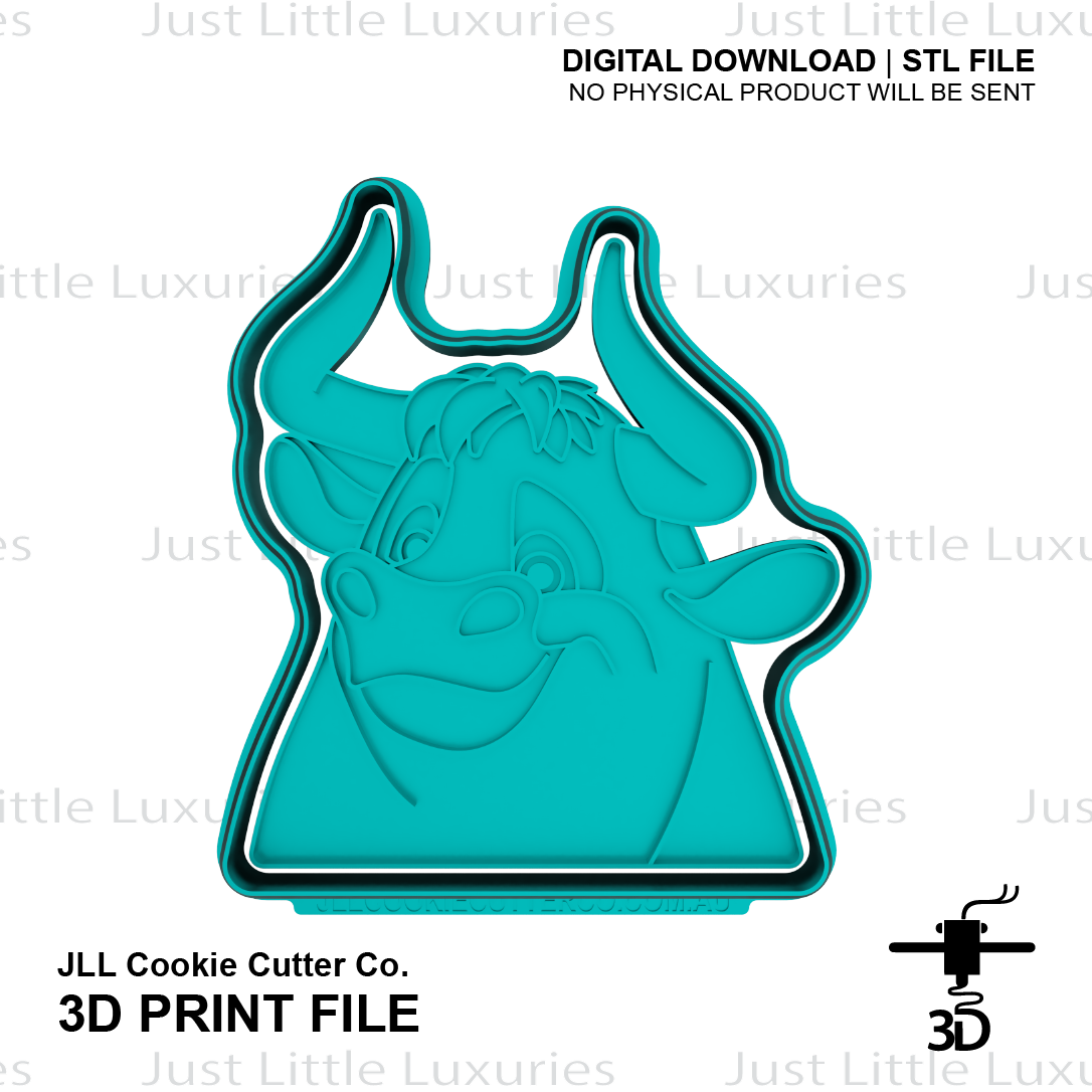 Create adorable cookies with this Ferdinand cookie cutter STL file. Perfect for unique treats, events, or edible gifts. Simply download, print, and start baking!
