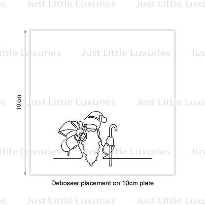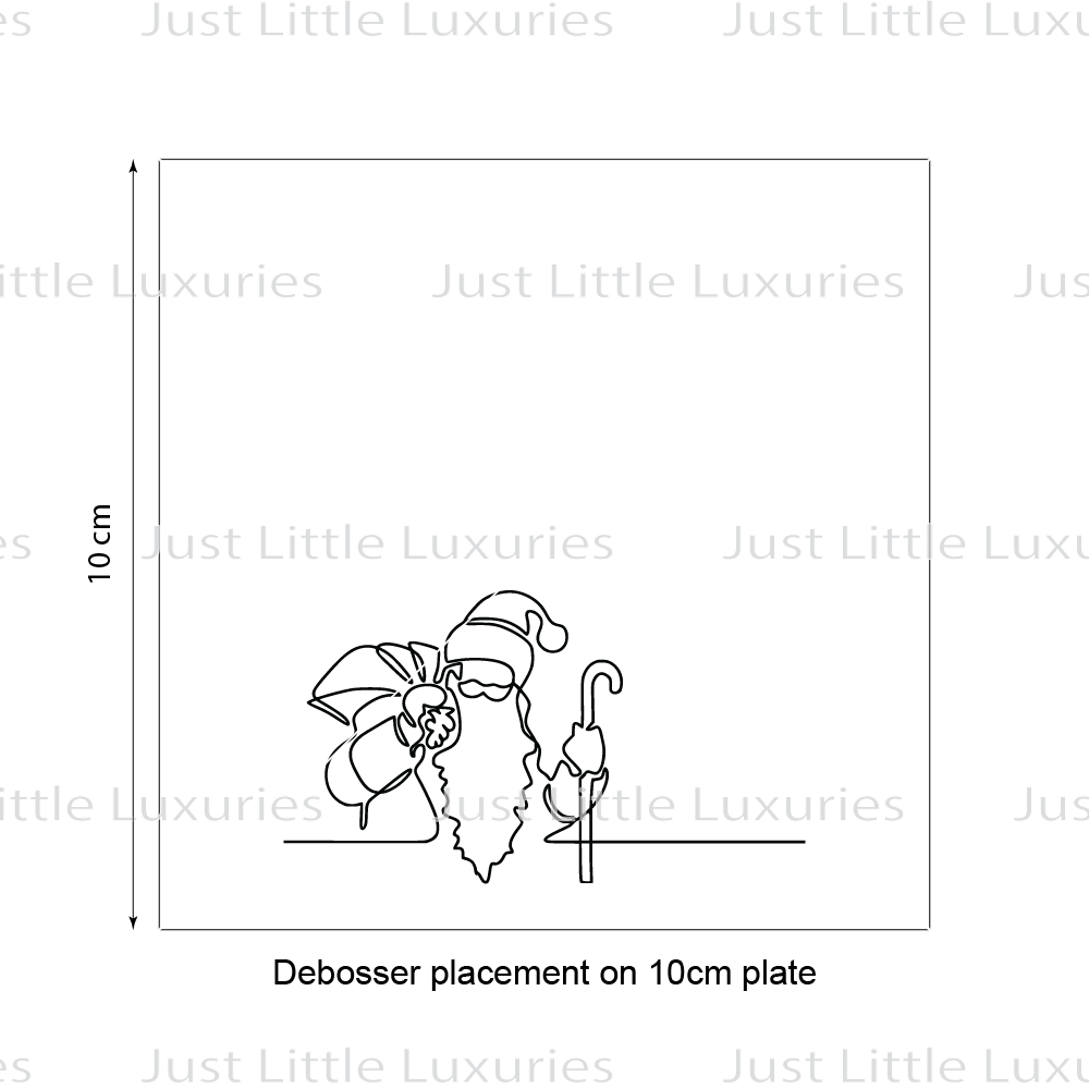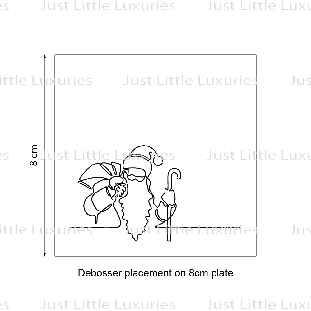 This style will allow you to emboss (press in) the outline of the image into fondant or cookie dough. This embosser is set on a piece of acrylic, to allow a fine and crisp finish. It has an embossing depth of approximately 3mm, the base of the embosser is approximately 4.5mm thick. Due to the bulky nature of this designs base, there is no handle.