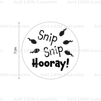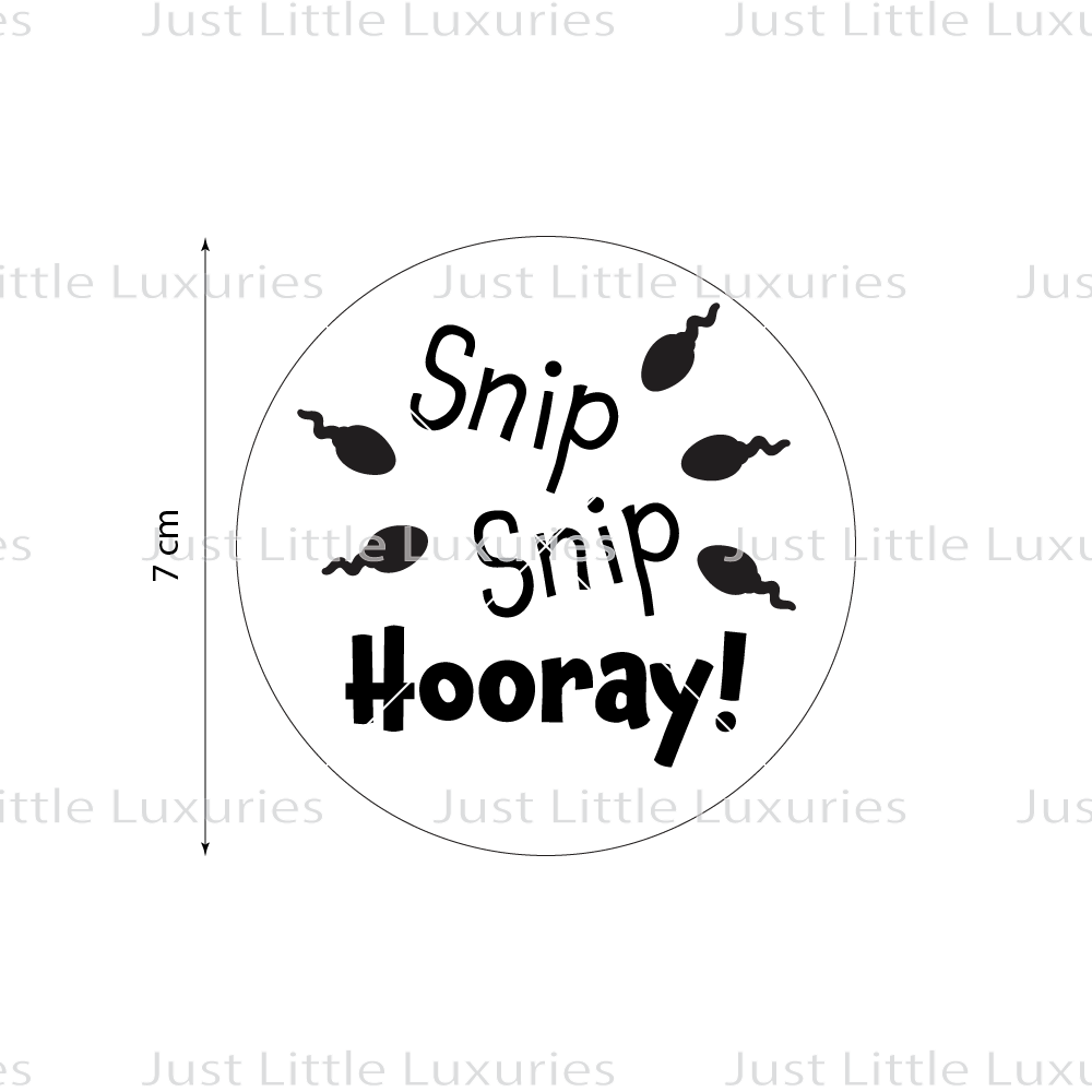 - Lively Design: The playful sperm illustrations paired with the "Snip Snip Hooray" slogan offer a charming way to commemorate the occasion.