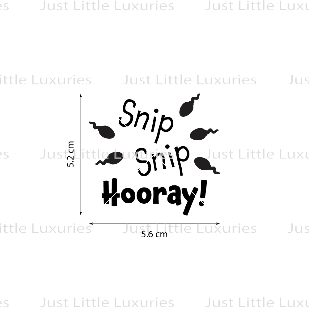 Embrace the lighter side of life changes with our "Snip Snip Hooray" Cookie Stamp, playfully adorned with whimsical sperm illustrations. It's a fantastic choice for adding a humorous touch to a vasectomy celebration or as a unique gift to lift spirits.