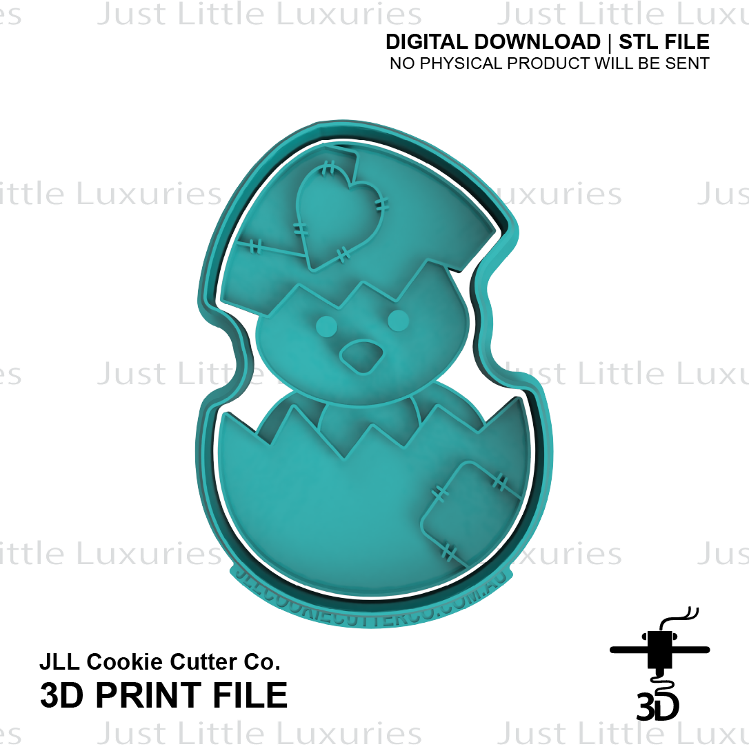 Create fun cookies with this Patchwork Chick cookie cutter STL file. Perfect for unique treats, events, or edible gifts. Simply download, print, and start baking!