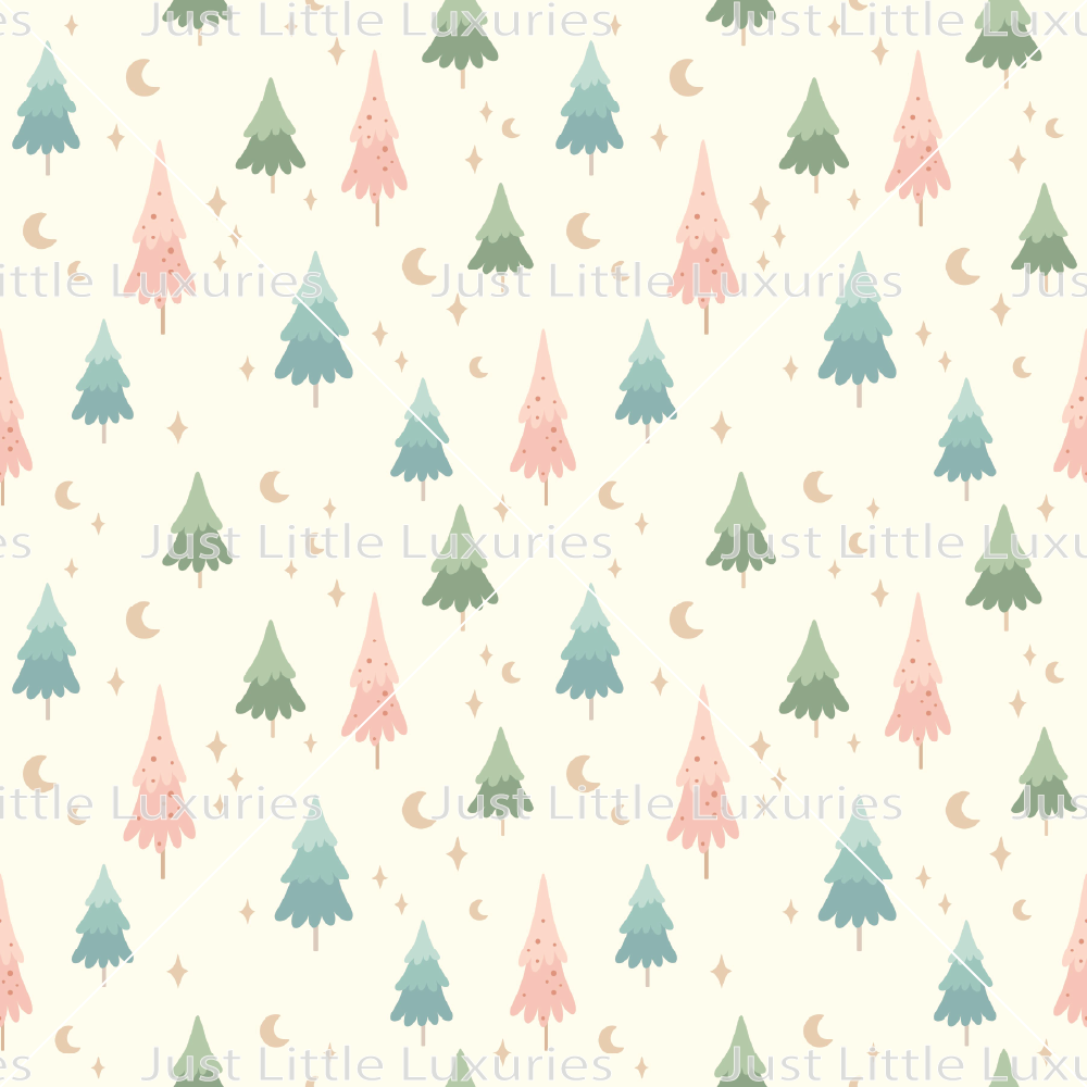 Pink & Green Pine Trees - Digital Edible Image (Seamless Pattern)